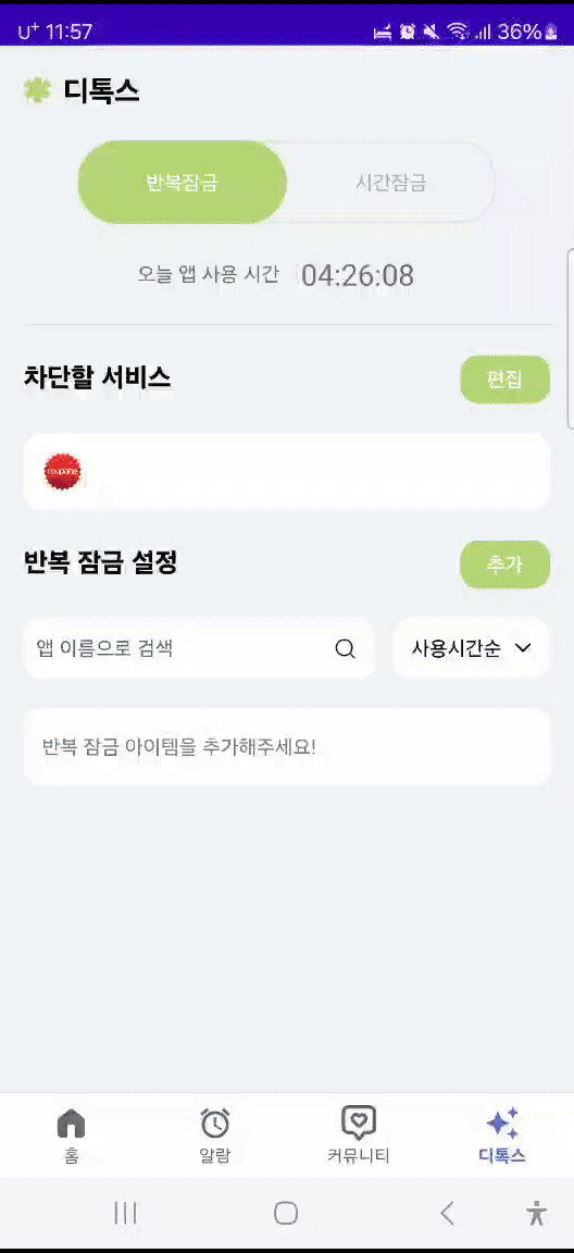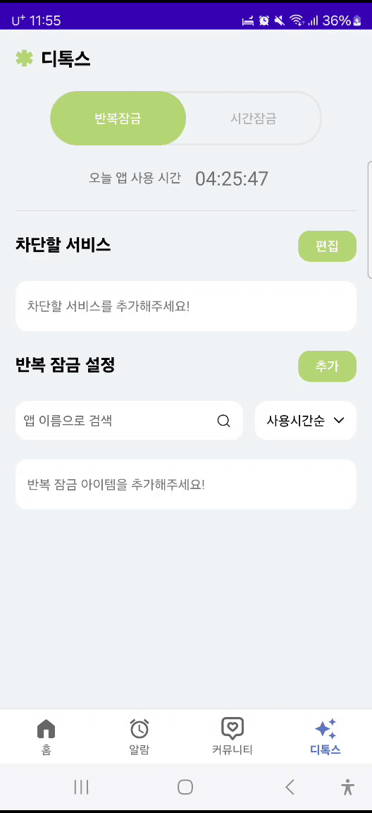 - 서비스 : 차단할 앱을 백그라운드에서 감지해야함
