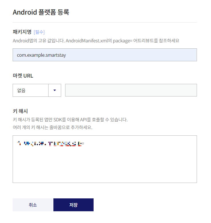 키 해시를 적어주면 됩니다. 키 해시는 노출되면 안되는 값이라 모자이크로 안보이게 했습니다!
