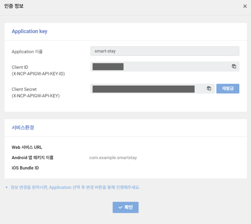 Client ID 와 Client Secret 키가 발급이 되는데요. 해당 값은 유출되면 안되기에 가려놨습니다.