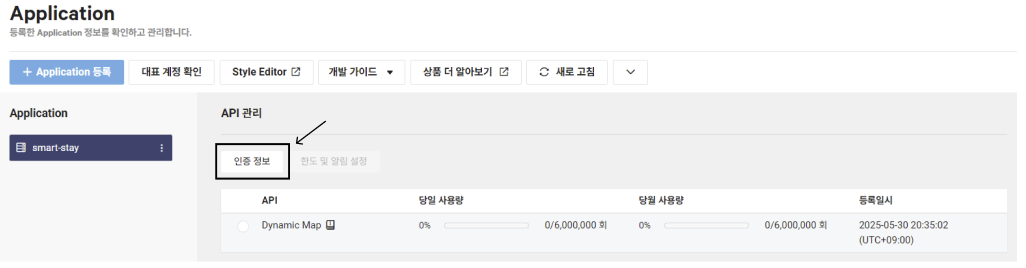 이렇게 어플리케이션이 등록된걸 확인할 수 있습니다! 인증 정보를 클릭해봅시다.