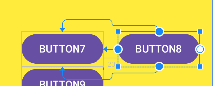 constraintLayout에서 button8이 button7 오른쪽에 오는건 알겠는데, 위치까지 같게 해주려면 top과 bottom을 parent에 고정시키는건지 애매했다(button7이 center에 잡혀서 우연히 맞아떨어지는거다). button7의 위치와 상관없이 정렬도 같게 할면 top을 btn7의 top에, bottom을 btn7의 bottom에 고정시키면 된다.