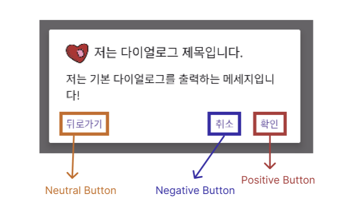 3가지 기본적으로 제공되는 버튼 기본 다이얼로그는 버튼을 기본적으로 3개 지원한다.