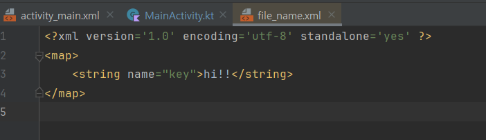 private fun loadData() { val pref = getSharedPreferences("file_name", MODE_PRIVATE) // 첫번째 인자는 받아올 데이터의 key 값, 2번째 인자는 데이터가 존재하지 않을 경우의 값 binding.etSharedpreference.setText(pref.getString("key","null")) }
