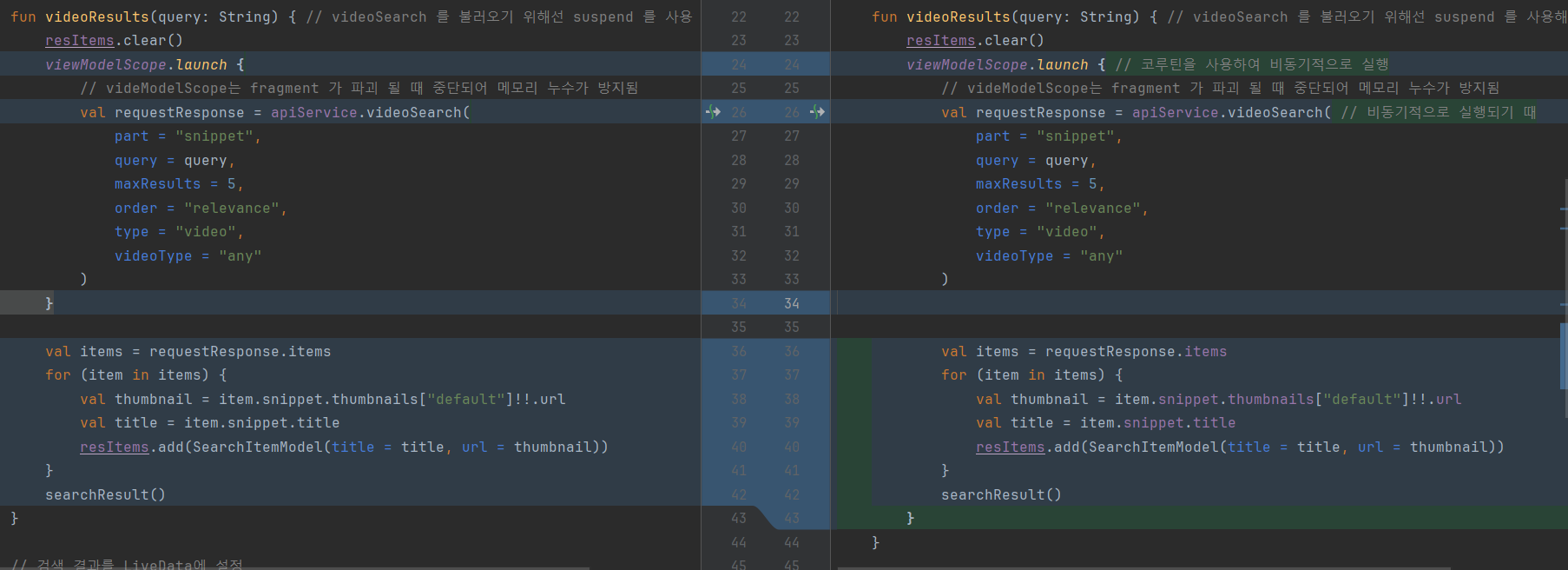 뷰모델에서 viewModelScope의 범위를 잘못 설정했었습니다.